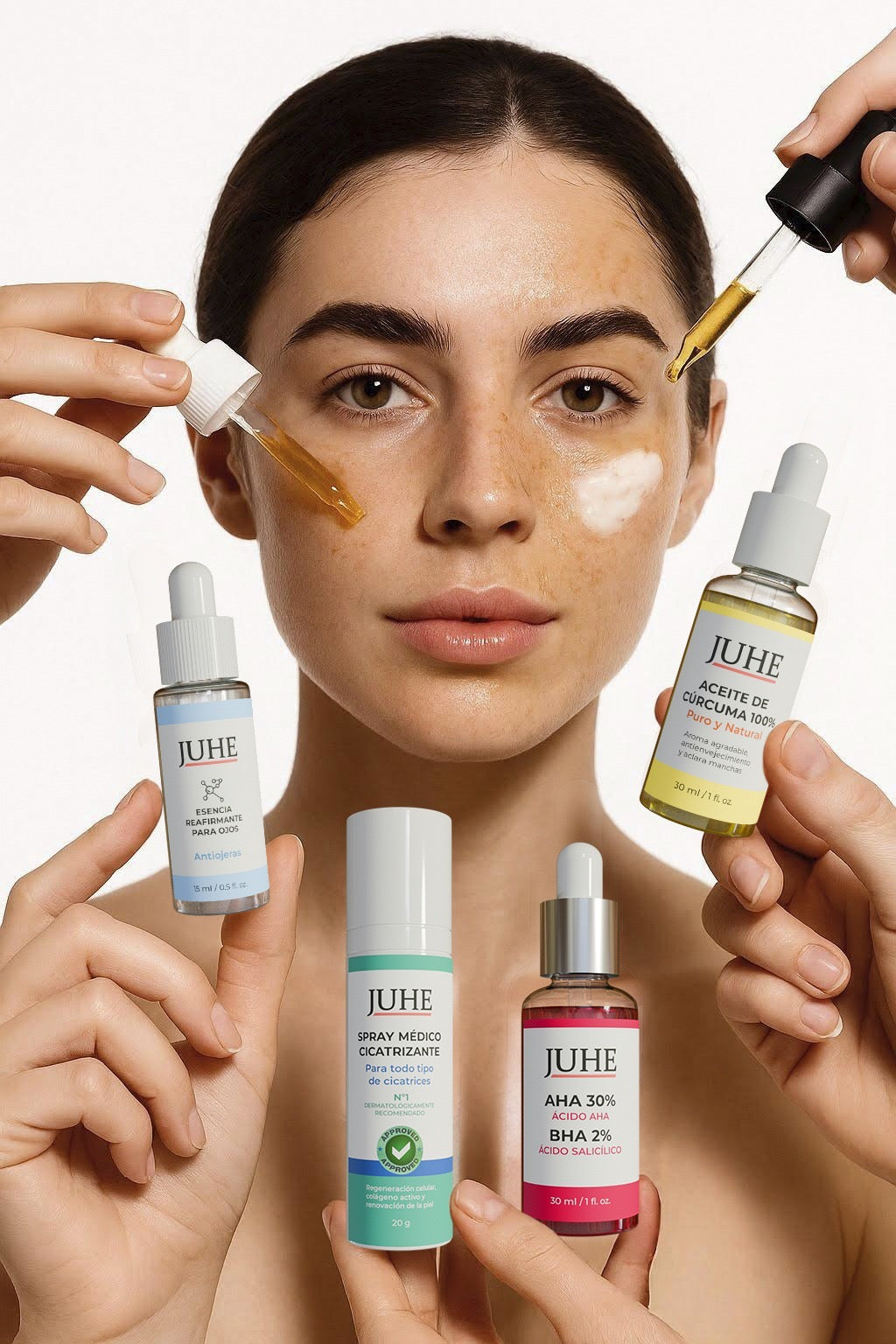 Nuestros productos JUHE hidratan y suavizan al instante, dejando la piel luminosa y saludable.